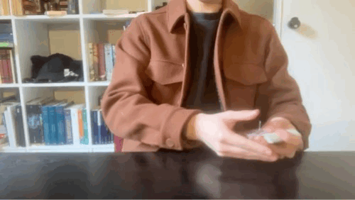 Cover the dropping card with your right hand to avoid flashing;